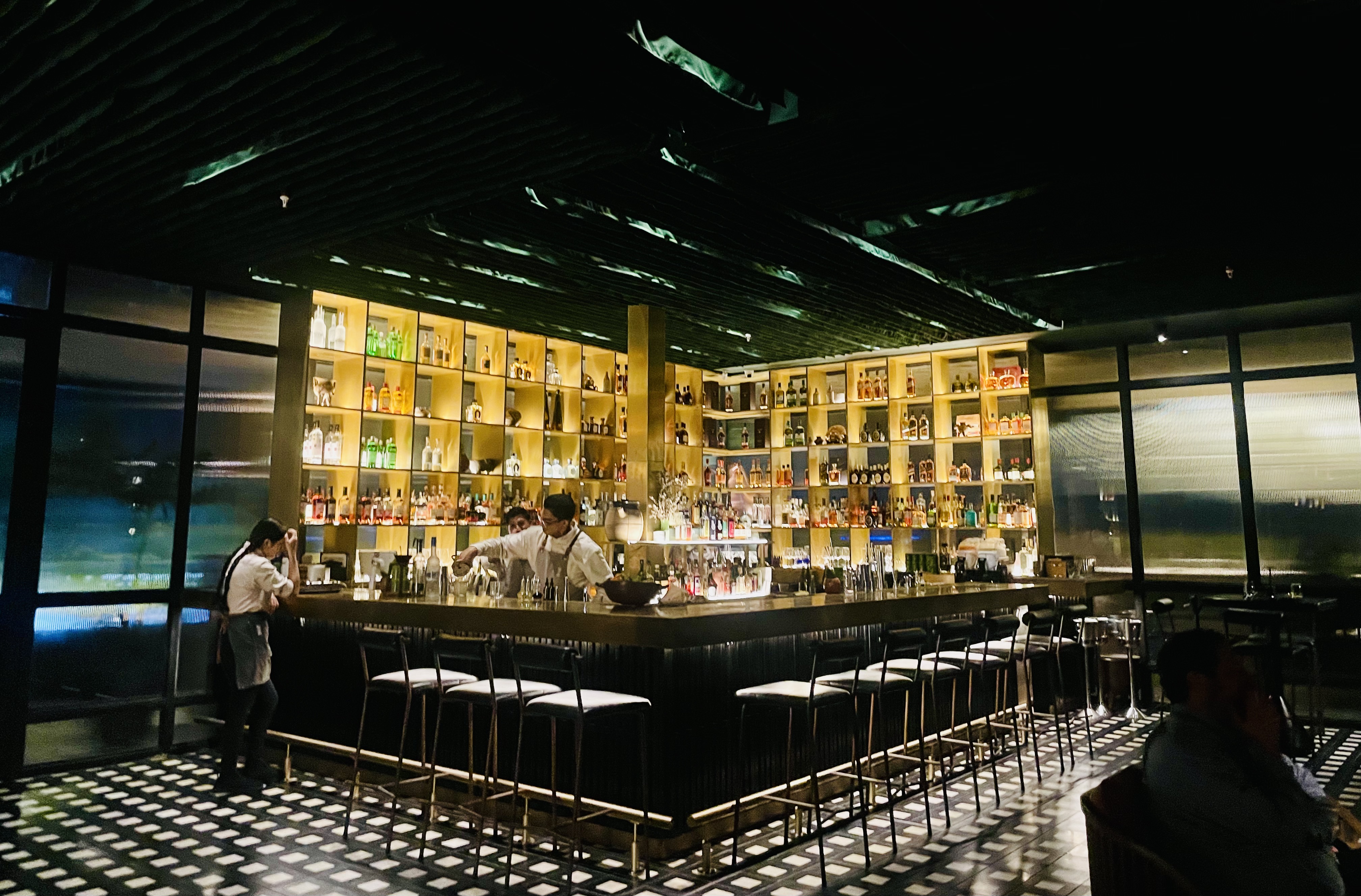 Mai Mai is decorated in a modern, chic style. The restaurant would fit right in in New York or Singapore. The centerpiece of Mai Mai is a gorgeous bar, which is paired opposite its somewhat open air kitchen.
